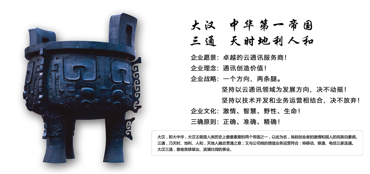 大漢三通本著“領(lǐng)袖級產(chǎn)品、領(lǐng)袖級服務(wù)、領(lǐng)袖級客戶”的宗旨,提升自己、成就客戶、奉獻(xiàn)社會。
